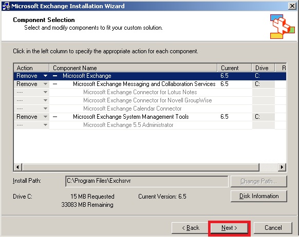 In the popup screen you will notice that no Exchange 2003 based server is available.