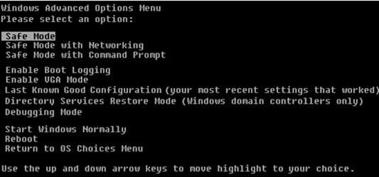 1. start your computer in a safe mode by pressing F8. You’ll see a set of options as shown below: