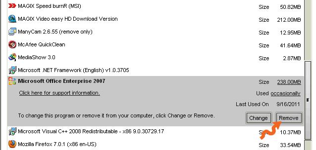 But it encountered a problem and I want to completely remove it and replace with MS-Office 2007.
