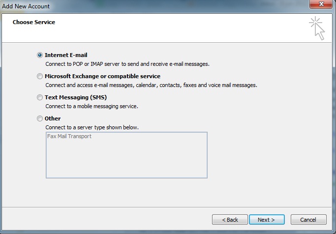 To set up Gmail in your Outlook 2010 start the email setup wizard. When it starts clicking next. The next screen will ask if you want to configure an email account, click yes and then the next. On the add new account screen choose manually configure and then click next.