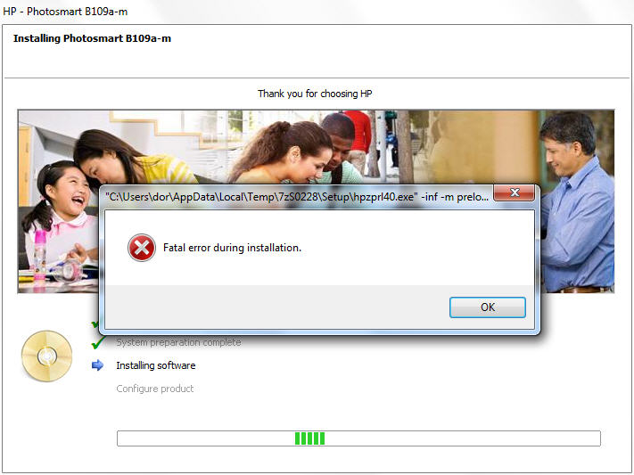 I would like to use PhotoSmart to organize and share my photos with friends and family. I downloaded the setup but during installation, I suffered a hitch and could not continue the installation. I got an error as shown in the image below. Can anyone shed some light on this?