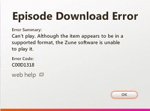 The item is in supported format, but Zune is unable to play.