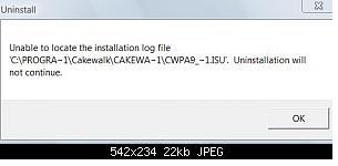 Unable to locate the log file 'C:PROGRA-1CakewalkCAKEWA-1CWPA9-1.1SU'.Uninstallation will not continue.