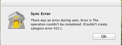 There was an error during sync. Error is The operation couldn’t be completed. (Couldn’t create category error 422.).