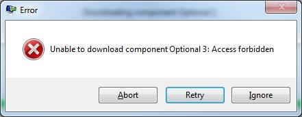 Unable to download component Optional 3. Access forbidden