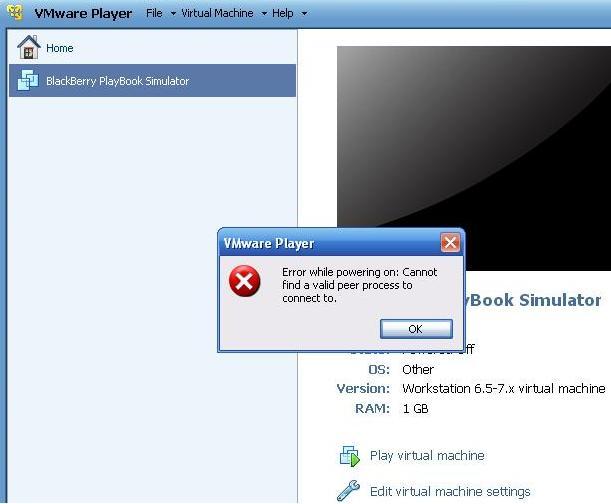 Playbook Simulator won’t run through VMware