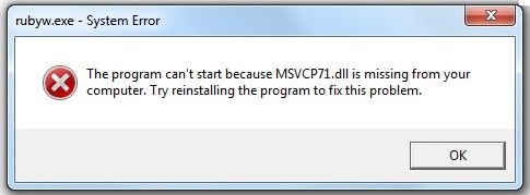 The program can’t start because MSVCP71.dll is missing from your computer. Try reinstalling the program to fix this problem.