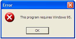 But in previous days error message say that I need windows 95 to be able to run the program so please anyone tell me what to do and how to stop this message.