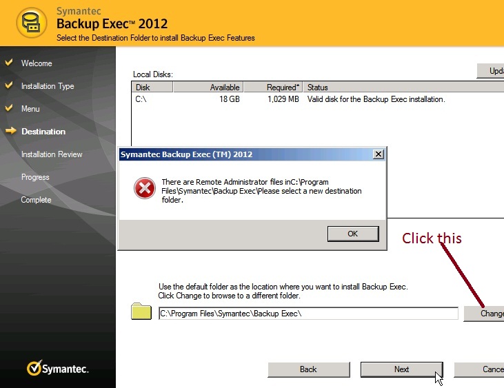 Symantec Backup Exec 2012 Installation Error