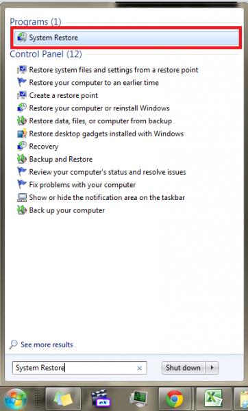 System restore option in Windows 7