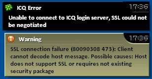 Unable to connect to ICQ login server. SSL connection failure 80090308 473