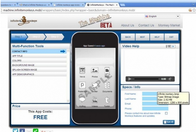 Infinite monkeys is an online software by which you can make your own apps for iPhone, Android or HTML5. You can create your own app even if you are technically not so known to the app making process. The first app will be free and then you have to pay a nominal charge of $49.