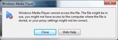 Windows Media Player cannot access the file. The file might be in use, you might not have access to the computer where the file is stored, or your proxy settings might not be correct.